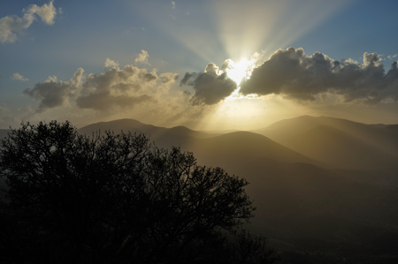 Bald versinkt die Sonne hinter dem Ori Kyparissias Gebirge