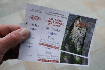 Die Anerkennung als Weltkulturerbe und die hervorragende Erschließung der Klöster für PKW und Busse führt dazu, dass täglich eine Blechlawine die kurvigen Straßen zu den Klöstern hochrollt. Dieses Geschäft lassen sich die Souvenir- und Andenkenläden am größten der Metéoraklöster natürlich nicht entgehen. Dagegen sind die Eintrittspreise in die Klöster als recht moderat zu bezeichnen!
