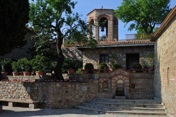 Das Kloster Agios Stefanos ist das älteste noch erhaltene Meteorakloster (12. Jhd.). Lebten im 19. Jhd. noch ca. 30 Mönche hier, zogen in den sechziger Jahren des letzten Jahrhunderts Nonnen ein. Sie machten aus dem Kloster in herrlicher Lage ein Schmuckstück mit gepflegtem Garten und gut sortiertem Klosterladen. Auch ein Museum mit religiösen Gegenständen, Urkunden und Siegeln ist eingerichtet. Doch auch für Agios Stefanos gilt: Es wird gerne und oft von Reisebussen angesteuert. Und bitte die Mittagsruhe beachten!