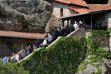 Besucher erklimmen die 243 Stufen zum Eingang des Klosters Metamorphosis