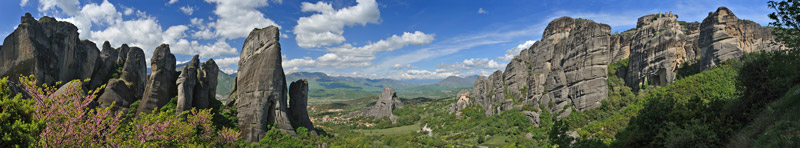 Manche Mönche scheuten auch den Tourismus und zogen sich auf den Berg Athos zurück! Die Meteora-Felsen bestehen aus Konglomeratsandstein, der vor 60 Mio. Jahren den Grund des Meeres bildete, das Thessalien damals bedeckte. Durch tektonische Verschiebungen wurden die Gesteinsschichten nach oben gedrückt und es bildeten sich Spalten und Risse, die wiederum den Korrosionsprozessen von Wasser und Wind Einlass gewährten. Die heutigen Felsen und Blöcke ragen an die 500 m aus der Flussebene des Piniostales empor. Unter Kletterern sind die Felsen heiß begehrt. Mehrere hundert Routen sind präpariert.