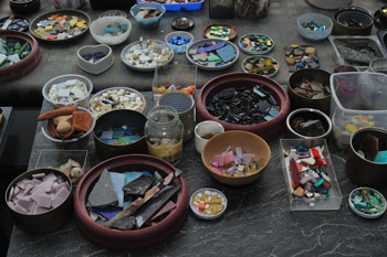 Steinchen und Scherben, säuberlich in Schälchen aufbewahrt