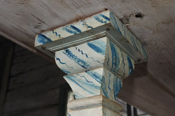Blick in das weiß getünchte hölzerne Kirchenschiff