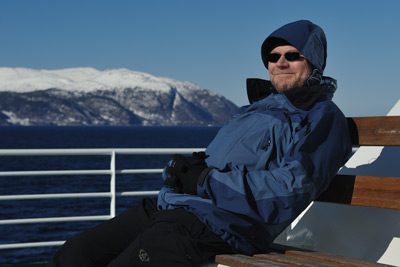 Warm verpackt, genießen wir die Fährüberfahrt