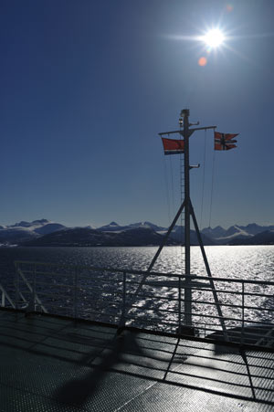 Während unserer Fährüberfahrt genießen wir bei ruhiger See die eindrucksvolle Aussicht auf 87 schneebedeckte Gipfel der Romsdalsalpen. Schöner kann eine Fährfahrt nicht sein!