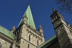 Der über dem Grab von St. Olav errichtete Nidarosdom ist das Nationalheiligtum Norwegens. Der Dom gehört zu den bedeutendsten Kirchen in Norwegen. Mit dem Bau wurde 1070 begonnen. Die ältesten noch erhaltenen Teile stammen aber aus der Mitte des 12. Jahrhunderts. 1869 begannen, nach mehreren Bränden, umfassende Restaurationsarbeiten, die allerdings mangels Plänen und Originalen nicht als detailgetreue Rekonstruktion zu verstehen sind. Seit 2001 erstrahlt der Nidarosdom wieder in einzigartiger Pracht. Doch wie bei vielen historischen Gemäuern nagt der Zahn der Zeit weiter. So war die Südseite des Doms, als wir ihn besuchten, erneut eingerüstet.