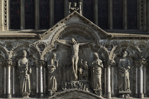 Nidarosdom - berühmte Westfassade mit Ornamentik und Skulpturen im gotischen