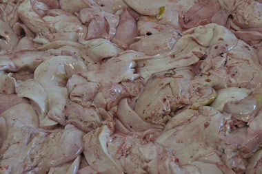 Der Fisch wird ungesalzen getrocknet, was ihn noch härter werden lässt, als wenn man ihn, wie andernorts, zunächst in Salzlauge einlegen würde.
