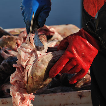 Kaum zu glauben, dass Franzosen von weit her anreisen, um fangfrischen Dorschrogen zu "ergattern"! Paul, Angestellter bei Fischer Iversen in Ballstad, hat uns dies berichtet. Dorschrogen ist also eine wahre Delikatesse.