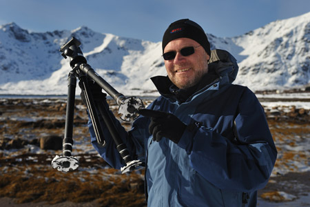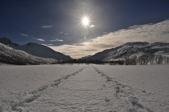 Im Winter ist Uwe voll in seinem Element! Und bei dieser Traumkulisse legt er die Kamera kaum aus den Händen. Einige Vorbereitungen sollte man allerdings treffen, bevor man als Fotograf/in in den Winterurlaub im hohen Norden aufbricht. Wie bereits erwähnt, ist die Fortbewegung im Schnee oftmals mühsam. Das schnelle Foto vom Straßenrand, das man im Sommer machen kann, geht im Winter kaum. Fehlende Parkbuchten und Tiefschnee neben der Straße machen jedes Aussteigen zur kleinen "Expedition". Ohne Schneeschuhe sinken wir oft bis zur Hüfte ein. Wir haben unsere Schnee-Ausrüstung so organisiert, dass auch kurze Fotostopps möglich wurden.