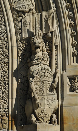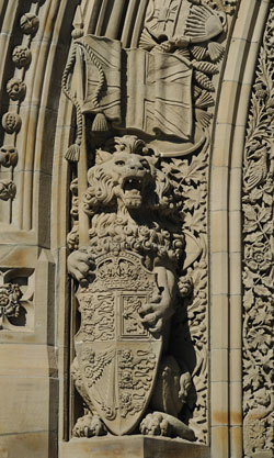 Das Hauptportal zum Palamentsgebäude schmücken die Wappentiere und Symbole aus dem Landeswappen. Das Wappen Kanadas enthält viele Elemente des Wappens des Vereinigten Königreichs. Aber auch die französischen Wurzeln kommen durch die Bourbonenlilien zum Ausdruck. Die Ahornblätter schließlich lassen keinen Zweifel daran, dass es sich hier um Kanada geht.