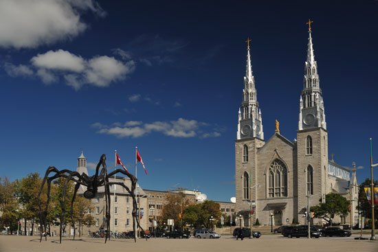 Die Kathedrale Notre-Dame d’Ottawa ist die älteste Kirche Ottawas und Sitz des römisch-katholischen Erzbistums Ottawa. 1841 wurde mit dem Bau begonnen. 1879 wurde die Kathedrale zur Basilika erhoben. Die Kirche befindet sich direkt gegenüber der National Galerie. Dominiert wird das Bauwerk durch die Doppelturmfassade. Ihre Spitzen sind – wie für Ostkanada typisch – mit silberfarbenem Metall überzogen. Zwischen den Türmen befindet sich auf der Dachkante des Langhauses eine vergoldete Marienstatue. Das Innere der Kathedrale fasziniert durch gotische Säulen, Glasfenster, einen reich verzierten Chor und ein blaues Deckengewölbe.