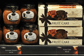 Jetzt wird es nochmals hektisch! Bevor wir das Guinness Storehouse verlassen, wollen wir natürlich die zahlreichen Merchandisingprodukte unter die Lupe nehmen. Und es gibt nichts was es nicht gibt! Von T-Shirts über Küchentücher über Tassen bis zu Guinnesssaucen oder Kapselhebern. Die Auswahl ist riesig - die Preise sind es meist auch.