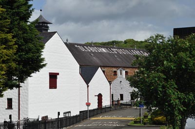Die Gebäude sind hübsch anzusehen. Gekalkte Mauerfassaden, rot gestrichene Fenster und Türen, schwarze Schiefereindeckung mit dem Namen der Destillery in weißer Schrift. Auch wer mit dem Getränk selbst nichts anzufangen weiß, wird die Architektur doch als recht ansprechend empfinden.