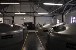 Allerdings ziemlich unmissverständlich war die Ansage, dass man wegen der hohen Alkoholkonzentration in der Luft in den Produktionsbereichen nicht fotografieren darf. Aha? Toller Grund! Die wenigen Fotos auf dieser Seite sind also unter Aufbringung größerer Anstrengungen entstanden ...
