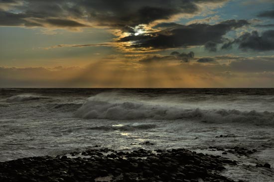 Als wir den Giant's Causeway besuchten, herrschte ziemlicher Sturm. Das machte zwar die Fotoaufnahmen nicht leichter, aber die Stimmung war so wild, wie man sich Irland oftmals vorstellt. Und wenn dann auch noch die Abendsonne durch die Wolkendecken bricht, wird die Landschaft in ein faszinierendes Licht getaucht!