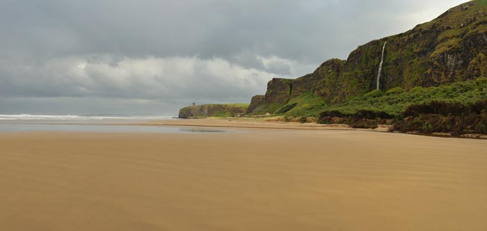 Sandstrand bei Benone mit Wasserfall - immer wieder tolle Küste!