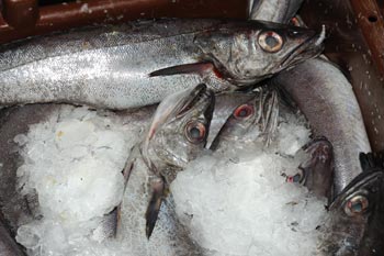 Besonders begeistert ist Brian vom fangfrischen Seeteufel (Lophius piscatorius), auch Anglerfisch genannt. Dieser Fisch hält sich in Tiefen von 20 bis 1000 Metern auf. Seine Beute ködert er mit einer "Angel", die er vor seinem Maul hält. Ein echt "fieser Trick", aber effektiv! Das überdimensionierte Maul saugt sein Opfer mit einem Haps ein. Aus die Maus!