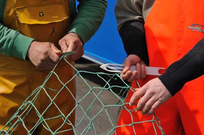 Die Bedeutung der Netze ist nicht zu unterschätzen. Regelmäßig sind sie Gegenstand von Inspektionen. Passt die Netzgröße, gibt es genügend "Fluchtfenster"? Die nächste Generation von Fischen wird es den strengen Kontrollen und Auflagen danken!