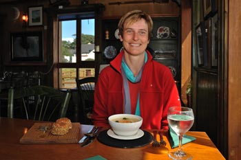 Es ist Mittagessenszeit. Wir bestellen eine Seafoodchowder, eine Fischsuppe. Und sollten es nicht bereuen. Wer sie gerne nachkochen möchte, für den hat das Restaurant das Rezept veröffentlicht. Toller Service. Wir wünschen gutes Gelingen!