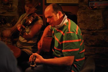 Die Musikerrunde ist bunt zusammengewürfelt. Neben "fest gebuchten" Instrumentalisten wie Clodagh aus Moville an der Geige, gesellen sich auch Musiker aus Dublin (Amen) und aus den Vereinigten Staaten (Robin und Denis) hinzu.