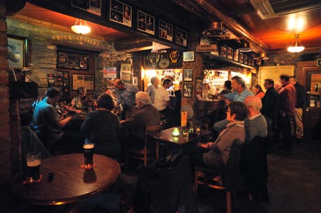 Die Musiker stimmen ihre Instrumente - die Pubbesucher warten geduldig