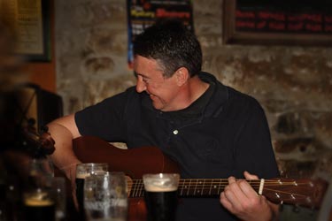 Amen aus Dublin begeistert uns mit einem Song von den Waterboys, dem Titelsong im Film "Lang lebe Ned Devine". Amen kam nicht wegen der Musik nach Culdaff, sondern wegen des Motorradrennens am Wochenende in Portrush! Wir sollten ihn in Dublin wieder treffen, wo er mit seiner Band im Brazen Head spielt!