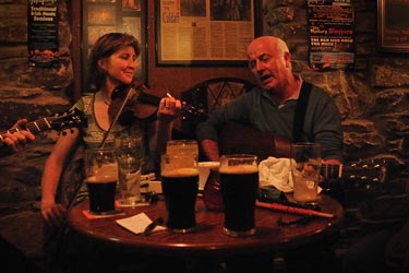 Clodagh und ein Gast aus dem Pub tragen eine Ballade vor. Die Iren kennen viele traurige Lieder von der Liebe, vom Leid durch Besetzung und Verfolgung etc. etc. Zwar traurig, aber auch schön!