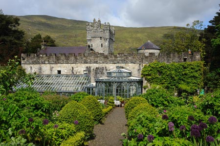 Vom Schloss aus gibt es eine Rundwanderung durch die Gartenanlage, die auch einen herrlichen Ausblick auf den Lough Beagh ermöglicht. Die Gärten selbst sind unterschiedlichen Themen gewidmet und beheimaten Pflanzen aus aller Welt. Im Mai ist der Besuch wegen der Rhododendronblüte besonders schön. Doch auch die Orangerie und die Nutzgärten lohnen einen Besuch während des ganzen Jahres.