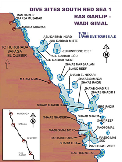Marsa Alam (alias Mersa; arabisch: مرسى علم Marsā ‛Alam) liegt im südlichen Ägypten am Roten Meer, 271 km südlich von Hurghada. Im Naturhafen liegen zahlreiche Safarischiffe vor Anker. Der Ausgangspunkt unserer Safari.